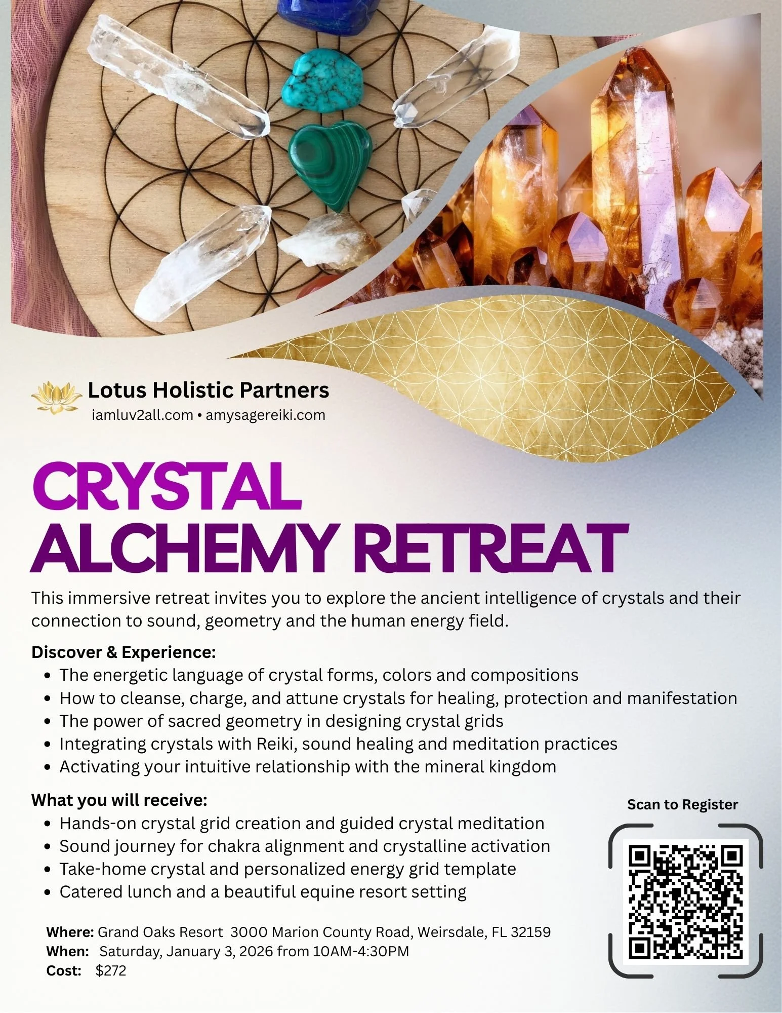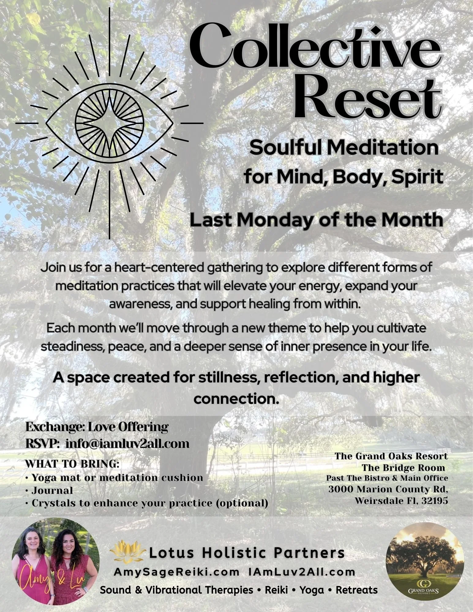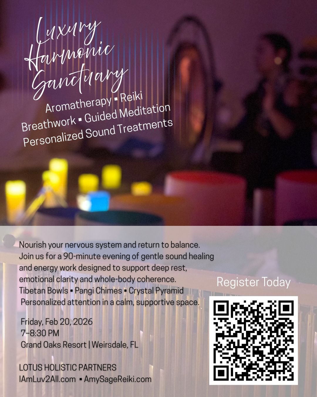 Accepting clients in Central Florida. Please contact me directly to schedule your private session, group event or medical professional presentation. I look forward to working with you! Please continue to scroll down for a complete list of offerings, upcoming events and retreats with Lotus Holistic Partners and private sessions with me at Grand Oaks Resort in Weirsdale, Florida.
