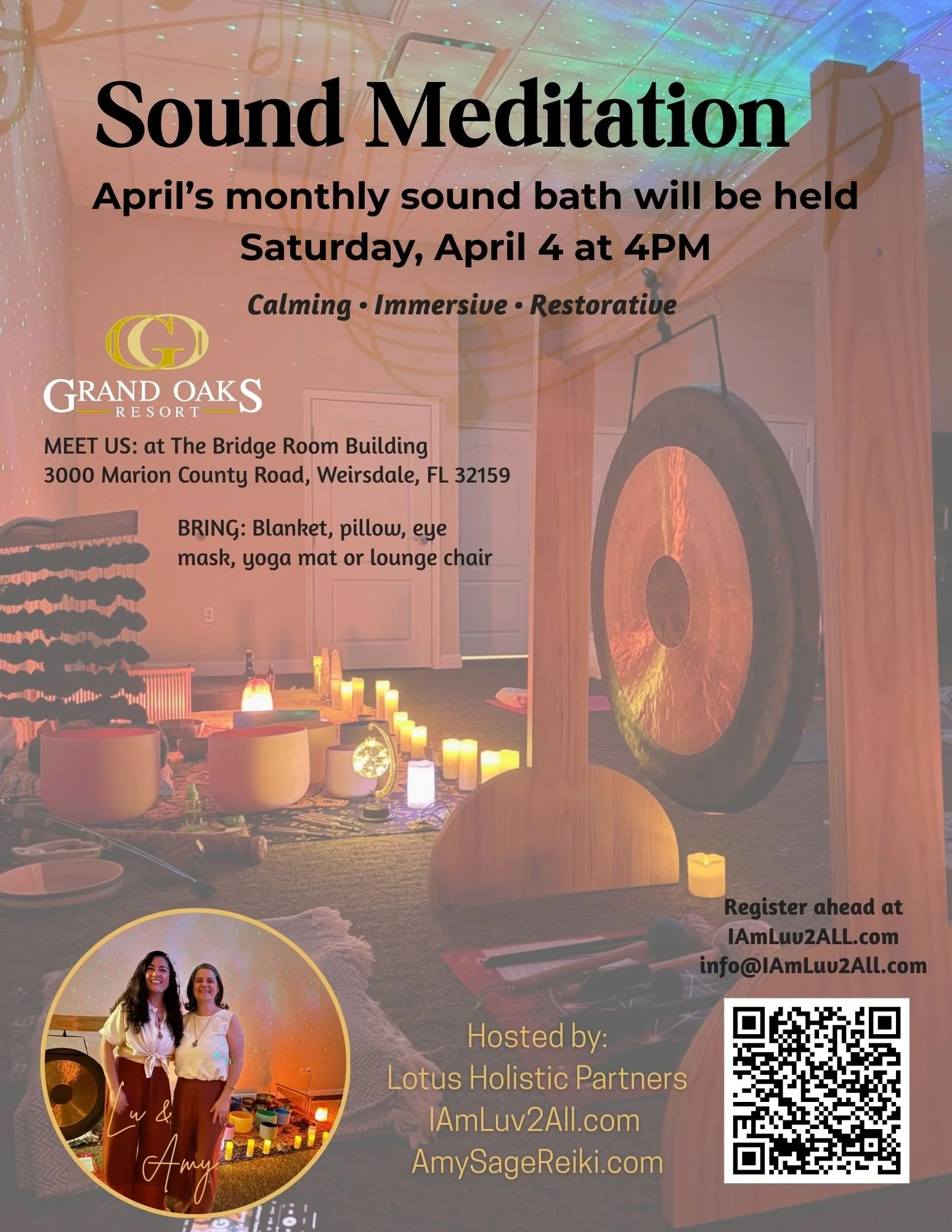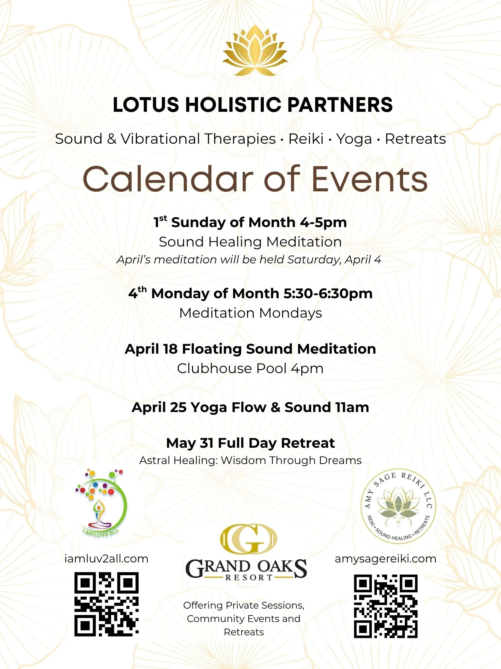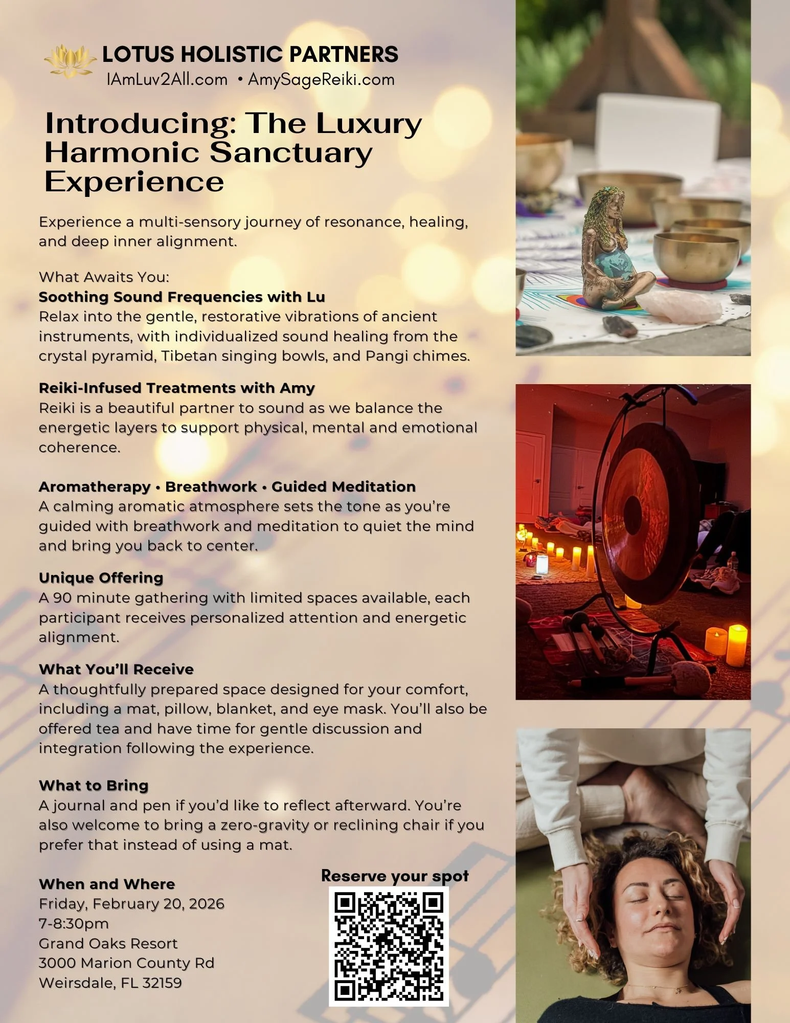 Accepting clients in Central Florida. Please contact me directly to schedule your private session, group event or medical professional presentation. I look forward to working with you! Please continue to scroll down for a complete list of offerings, upcoming events and retreats with Lotus Holistic Partners and private sessions with me at Grand Oaks Resort in Weirsdale, Florida.